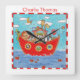 Denna vackra tryck av en illustration med pennor och akvarell av Helen McCartney Designs visar en grupp söta djur hopkurade tillsammans ombord på Noas ark.