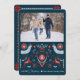 Skicka varma önskningar denna höst- och vintersäsong med vårt charmiga nordiska julkort! Kortet har ett anpassningsbart familjefoto på framsidan och ett festligt folkkonstmönster med fåglar, hjortar och blommor på baksidan. Perfekt för att dela din julglädje med vänner och familj.