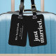 Ny gifta-resetaggen i den enkla moderna Personligen ger en speciell tryckning för resor. Denna svarta och vita märkre har den hjärtliga frasen "Ny gifta" i en ren, contemporary och ger en elegant och en sofistikerad fläkt till honungsresenärers bagage. Den perfekt gåvan till nygifta kombinerar det minimalistiska stil med praktisk tillämpning, skapar det som en idealisk följeslagare till deras smekmånad. Anpassa dem för att bruden och brudgummen ska skapa en unik och tankfull keepé för sina resor. Anpassa den här unika märkrn under Anpassa den här mallen. Ursprunglig design av Ana Garza/Kardz Studio. Om du har några frågor, kontakta mig gärna genom Zazzle- Chattan.