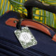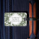 oliv grönt och vit personlig-/blommigt bagagetapp. Se till att du har all din kontaktinformation på bagaget. Lägg till ditt namn på framsidan och adress och mobilt nummer på baksidan.