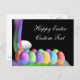 Original KLN Artwork - Bevackert målade ägg av färgad omgivna av ett rent band av färg. Vackra pastellers rosa, blått, grönt, guld, turkos, lila, rött och orange mot svart bakgrund med ytterligare vita accenter. Ett perfekt påsk helgdag-vykort för någon speciell.
