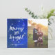 Önska alla i god jul med den här enkla och elegant handskrivna personligen "Peace kärlek joy" med ditt eget familjefoto och eget meddelande, med vackra handskrivna och typografi i rött vattenfärg och vattenfärg ett mönster på baksidan.
