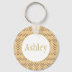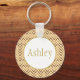 Snyggtens personlig-nyckelkedjedesign har anpassadets namn-text i mitten med persiko- och guld-chevron rand-bakgrund i mönster.