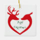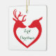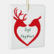 Det här parets första prydnadsämne i jul i träd har ett silhuettrött hjärtformat hjort par i kärlek. Det kan vara personlig med namn, år eller vilken text som helst som du vill lägga till. ^