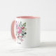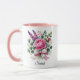 Tillägg elegans och charm till din dagliga rutin med denna personliga påskonsblommiga mugg. Med en mjuk bukett av rosa påskliljor, delikat grönska och en romantisk banddetalj är denna design anpassad med ditt namn för en verkligt speciell touch.