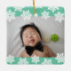 Det här snygga fotot i baby-ornament har ett foto på en mint grönt med snöflingor. Namn, datum och meddelande finns på baksidan. Enkel att anpassa med hjälp av den mall som fälten tillhandahåller. Perfekt för en baby första jul, det är en underbarare gåva till nya föräldrar eller far- och morföräldrar.