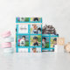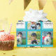 Aqua teal turquise blue bakgrund med ditt förnamn eller efternamn och ett första monogram för brev, lägg till dina 3 favoritdigitalfoton till denna unika och anpassningsbar personlig collage photomontage monogrammed presentbyte! Skapa din egen unika anpassningsbar-fotogåva med hjälp av familjeresurser, barn porträtt eller till och med bilder.