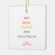 Ge Mamma är en hjärtlig ivrig själ som hon kommer att värna för alltid! Den här vackra keramiska prydnadsprodukten har ord "Hej Mamma, tack för allt" i en underbar, färgstark design på ena sidan, med utrymme för en anpassningsbar familjefoto på baksidan. Perfekt för Mors dag, jul eller tillfälle är detta prydnadsämne ett meningsfullt sätt att visa kärlek och uppskattning. Lägg den på träd, visning den året om, eller ge den som en speciell påminnelse om skattade familjeögonblick. 💖 🎁 ✨