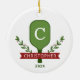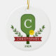 Personlig Pickleball-julprydnad. Minneshögtidlighålla ert år av pickleball som leker med en söt, festlig prydnad. Anpassa med ett första monogram inuti paddeln och lägg till ditt namn och år. Visas i en klassisk röd palett och en grönt med en vanlig gult-pickleball, men ALLA FÄRG ÄR REDIGERBARA AV DIG! Du kan välja nytt färg för paddeln, pickleball, holly + bär, banderoll och text. Se bara till att göra samma ändringar på andra sidan av dekoratet. © Kimbelled, LLC