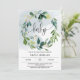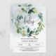 Personlig pojk, liten babyduschinbjudan till babybabybarn med färsk grön eucalyptus-bladkrans och modern rostisk kalligrafi, Ro ©