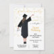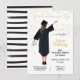 Moderna examensinbjudningar för den nya medicine studenten i din familj. Har baksidan av en glad flicka med svart examensdräkt, hatt och diplom och håller ett stetoskop med falska guldconfetti och en modern svart-vitrandig bakgrund. Byt ut håret för att passa dina behov, vänligen fråga mig om din hårfärg på tkatz@me.com. Bra för gymnasiet, sjuksköterska, läkare, universitet, jurist, doktorsexamen etc.