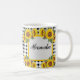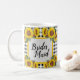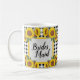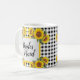 Överraska din brudtärna med den här personliga mugg för brudtärnor med ett tidlöst svart rutigt mönster och ljusa gula solrosor! Ena sidan visar ordet "Brudtärna" medan den andra sidan har ett anpassningsbart textfält där du kan lägga till hennes namn. Om du använder den som en förfrågan till brudtärna, en present vid brudens shower eller en gåva på möhippan, är denna charmiga mugg ett hjärtligt sätt att säga tack.