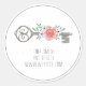 Ett runt klistermärke med ett dekorativt nyckel och blommor med ett litet guld stänk. Lägg enkelt till ditt namn och din webbplats med bara några klick.