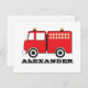En söt illustration av ett rödbrand lastbil ungar leksak. Den beundransvärda röda eldmotorn rusar iväg för att släcka en brand. Perfekt för vem som helst och vilken ålder som helst. Ett favoritakut fordon. Enkel att anpassa med ditt namn!
