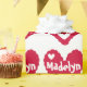 Alla hjärtans dag-presenten figurerar pappert med ett rött hjärta med mindre vita hjärtan och vit text som du kan anpassa med ett namn mot en vit bakgrund.