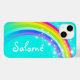 Söt regnbågsutformning iphone case. Personalisera med din egen namn, läser för närvarande Salomé. (***Observera att vissa namn inte alltid passar på grund av typsnittets karaktär. Helt designad och illustrerad av Sarah Trett.