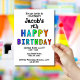 Låt oss förbereda oss för en fantastisk fest med denna söta, personliga och mycket färgglada design med regnbågsfärgad Glad födelsedagstext, på vit bakgrund. Skål!