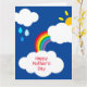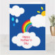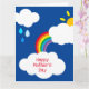 Ett underbart ljust färgstarkt väder-tema mönster med en regnbåge, vita fluffiga moln, ett lätt duggregn och solsken.