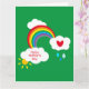 Ett underbart ljust färgstarkt väder-tema med en regnbåge, vita fluffiga moln, ett lätt duggregn och solsken.