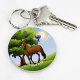 Pryda dina nycklar med stil med denna personliga nyckelring som har en vacker illustration av en renrasig häst som står på en frodig, grön äng med en majestätisk ek och en söt blåmes. Denna högkvalitativa design är realistisk och detaljerad och kommer att vara en unik present till hästälskare. Anpassa namnet på framsidan och ytterligare text på baksidan för att skapa en genomtänkt gåva till hästentusiaster.