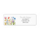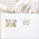 Denna personliga returadressetikett har ömtåliga akvarellvildblommor i mjuka rosa, blå, gula och lila nyanser längs botten, i kombination med ett elegant namn i skrivstil tvärs över den rena vita ytan. Vacker och praktisk, perfekt för skola eller kontor.