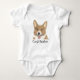 Älskar denna vackert detaljerade akvarellillustration av en röd-vit corgi-hund på en barnsinglet eller t-shirt - perfekt för att fira en ny bebis eller valp! För de sötaste gåvorna, lägg till fler matchande föremål (som konsttryck, nappfläsk, kuddar och filtar, oj då!) från samlingen! För att se mer arbete och lära dig mer om denna konstnär, besök henne på: www.theprintsprincess.com www.instagram.com/theprintsprincess
