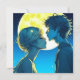 Personlig animerar asiatisk flicka och romantiskt ögonblick kyssar framför fullt måne. Alla hjärtans dagskort.