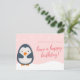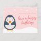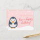 Personlig - Rosa Illustrerad Pingvin Födelsedag Vykort