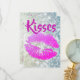 Rosa lipstick "Kisses" är en roligt modern design som ett tackkort för födelsedagar, möhippor, möhippor och mycket annat.