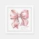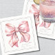En charmig servett för cocktail med en stor akvarell rosa rosett i mitten. Den blivande mammans namn visas i ett klassiskt serif-teckensnitt, med "Baby Shower" elegant skrivet nedan i handskriven kalligrafi. Runt servettens kanter finns en subtil dubbel linjeram i mjuk grå färg som ger designen en touch av sofistikation och balans.