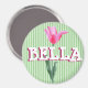 Personlig Sage Grönt & Rosa Flower Namn Magnet