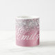 Girly faux sparkly silver glitter på ett ljust rosa digitalt konstverk för metallfolie stil. Anpassa det klassiska kalligrafteckensnittet stil, storleka, färg och skugga färg för att skapa ditt eget kaffe kopp. En kalligrafi av klassisk elegant på modern digital grafik som skrivs ut som ett foto.