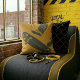 Gör ett djärvt statement med vår dubbelsidiga "Black & Gold"-serie kudde, designad för dem som lever för gatan. Framsidan visar den ikoniska siluetten av "Skateboard Jump" i aktion, nu optimerad med en slående svart och guld kontrast som framhäver varje detalj i mid-air-tricket. Du kan till och med anpassa brädan med ditt eget namn eller egen text för en unik look.