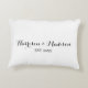 Personlig svartvitt skript par namn date Bröllop accent Pillow. Elegant, klassisk, minimalistisk utformning.