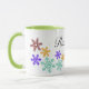 Detta pulserande mugg har en charmig matris av färgstarkt snöflingor mot en skarp vit bakgrund. Insidan är en glad kalkgrön eller valfri färg, som tillför en lekfull kopp färg till morgonkaffe eller te. Anpassa den med ditt namn eller ett speciellt meddelande om en gåva som verkligen är av ett slag. Idealisk för jul, den här julsäsongen som gåva eller ge. Lägg till en personlig beröring till din morgonrutin med anpassadet mugg. Perfekt för en vinter-temad gåva eller ett mysigt tillskott till ditt eget kök. Anpassa med ditt namn eller en älskad persons namn för en verkligt unik keepé.