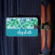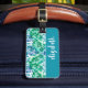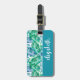 Den här bagageetiketten är en personlig med ditt första namn i en handskript på framsidan och dina uppgifter på baksidan. Den är en turkotisk, grönt och vit tropisk handflatan-träd-figur. Perfektens personliga gåva eller tillbehör till tillfälle! MATCHING-resväska och mer i vår resesamling.