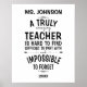 Läraren kommer att kärlek den här väggkonsten som säger: "En verkligt fantastisk lärare är svår att hitta, svår att delta i och omöjlig att glömma." Anpassa det till lärarens namn och datum, och hon kommer att ta hand om det i många år för komen. Det är den perfekt lärarens uppskattningspåge! Beställ din i dag!