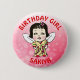 Bedårande "Födelsedagsflicka"-knapp med röd asiatisk älva. Whimsisk folkkonst stil födelsedagsknapp.
