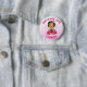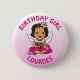 Bedårande "Födelsedagsflicka"-knapp med röd och röd latinamerikansk eller afroamerikansk älva. Whimsisk folkkonst stil födelsedagsknapp.