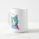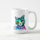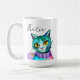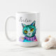 Lägg till ett namn på denna teal, lila, rosa och blå kattunge med gula ögon kaffemugg.
