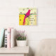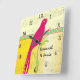 Personlig Söt Fågel Gul Rosa och Grön Fyrkantig Klocka