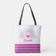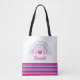 Söt rosa och lila och blå boho regnbåge personlig flicka toteväska, med matchande ränder längst ner. Designad för dig av Blackberry Boulevard.