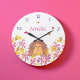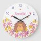 En söt liten igelkott som kramar ett litet rosa hjärta omgiven av vackra vilda blommor pryder denna personliga klocka. En underbar design för ett nyfött barn eller ett ungt barns sovrum.