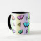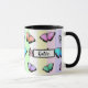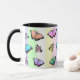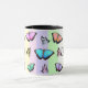 Söt rosa, lila, gult, grönt och blått fjärilkaffe mugg.
