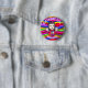 Bedårande "Födelsedagsflicka"-knapp med röd och lila saga. Whimsisk folkkonst stil födelsedagsknapp.