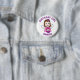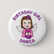 Bedårande "Födelsedagsflicka"-knapp med rosa och lila och brunhårig ängla. Whimsisk folkkonst stil födelsedagsknapp.