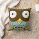 Personlig söt uggla blå & orange American Mojo Kudde