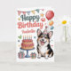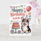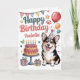Denna söta personliga corgi hund födelsedagskort design inkluderar en söt akvarell hund grafik, samt en födelsedagstårta och födelsedagsdekorationer. Framsidan av födelsedagskorten har en plats där du kan anpassa med ditt namn samt orden "Grattis på födelsedagen". Meddelandet på insidan av kortet säger "Hoppas din födelsedag är underbart fantastisk!"