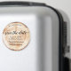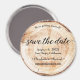 Anpassa dessa unika magneter i bröllop spara datum-cirkeln. Den har en tryckt skiva med sågat skal av trä, perfekt för ditt bröllop. Modern text för orden "Spara datumet" med långa utsmyckningsdekorationer. Chic och snyggt.