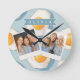 Personlig stekt äggmönster kul blå rolig rund klocka